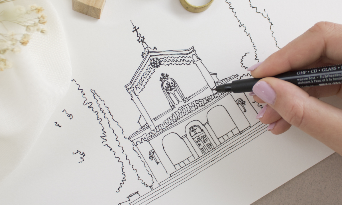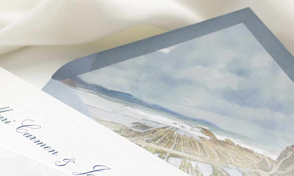 También podemos crear ilustraciones tipo boceto o acuarelas para el forro del sobre, el mapa u otros detalles especiales.