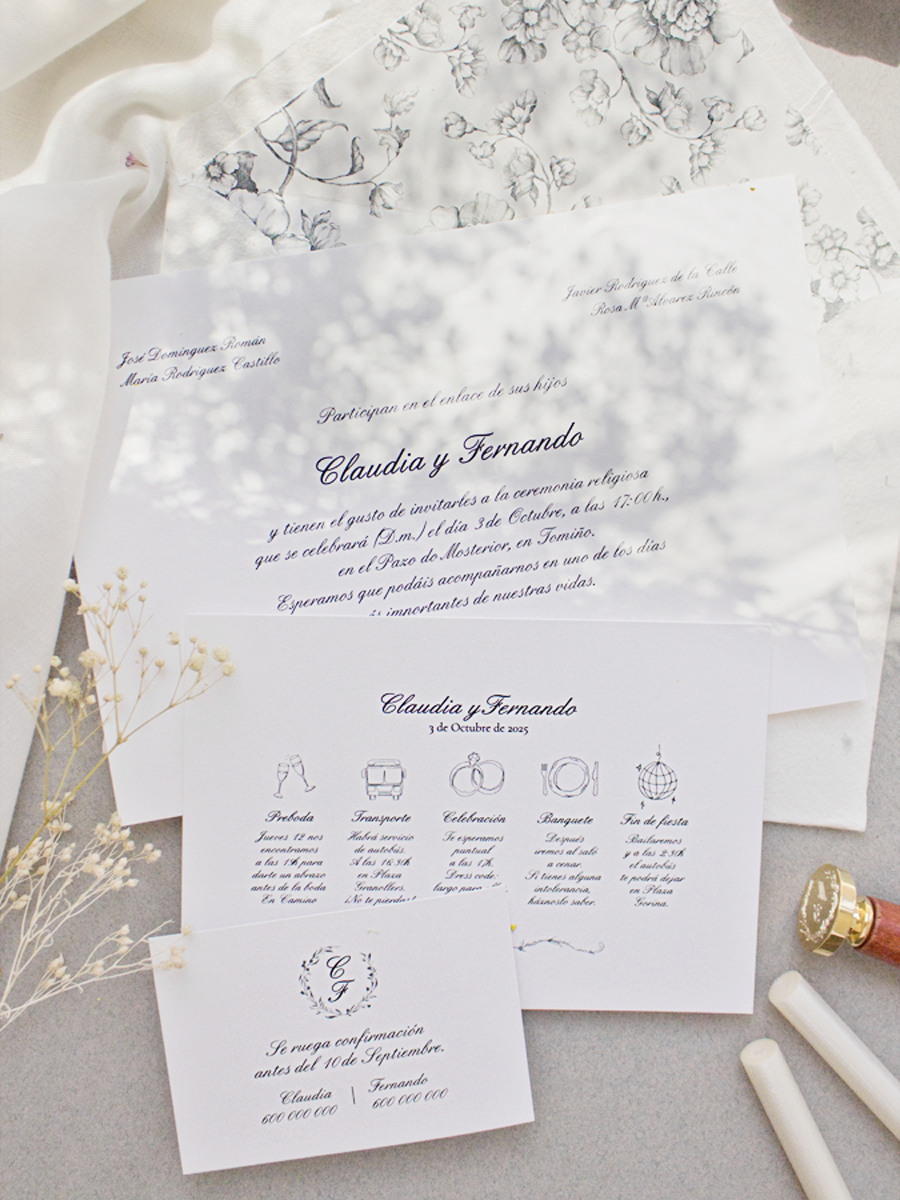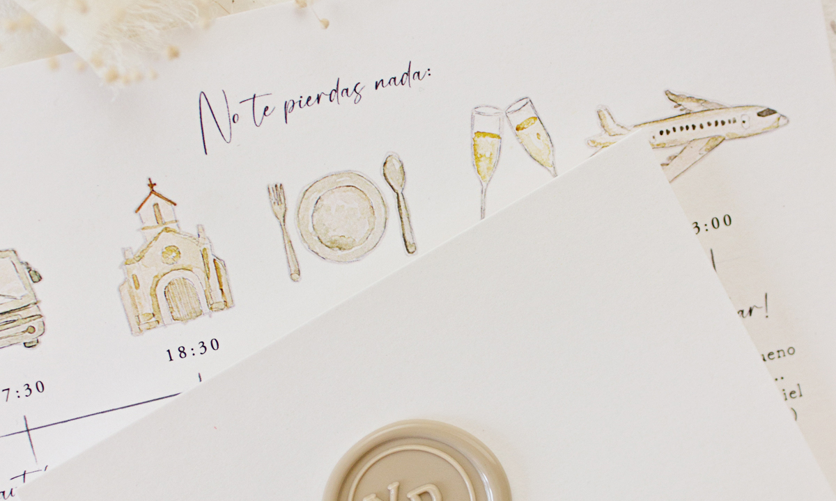 ¡Por supuesto! Podemos preparar cualquiera de los elementos de papelería y detalles que ves en la web, siguiendo el estilo de vuestras invitaciones.