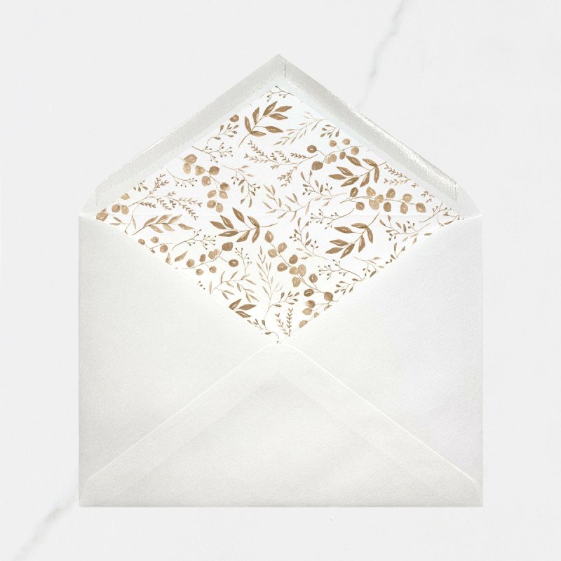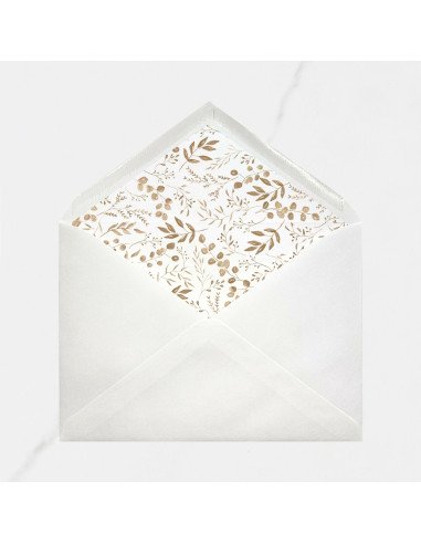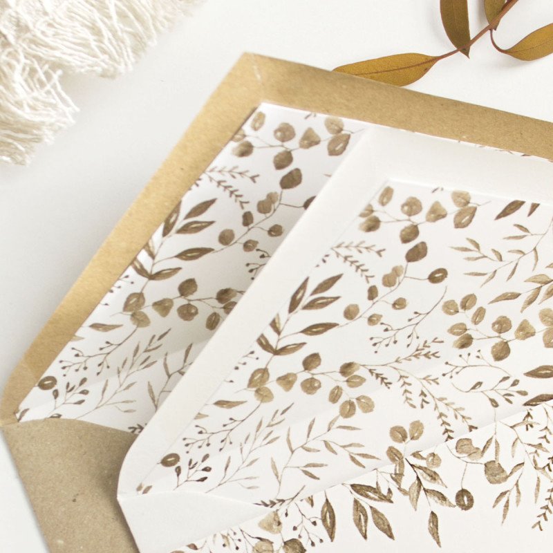 Sobre forrat, amb un estampat de fulles seques il·lustrades en aquarel·la.
