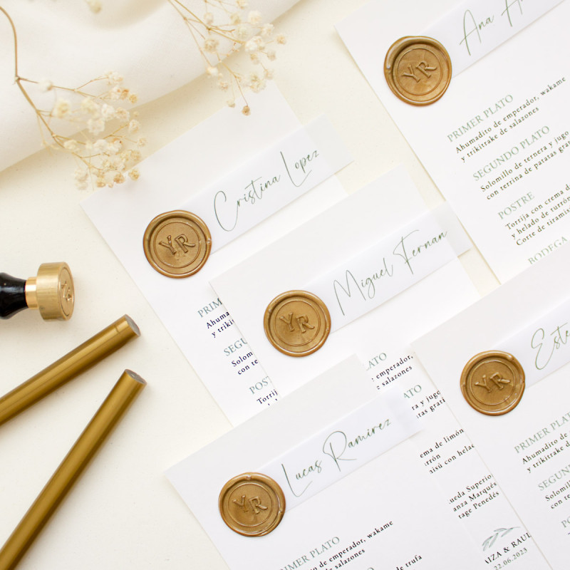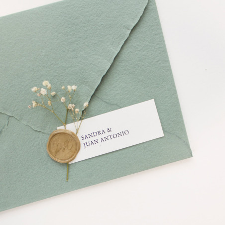 Targeta personalitzada amb el nom i cognom de cada convidat o família perquè puguis col·locar en sobres d'invitacions, menús,... i donar-li aquest toc tan especial i únic.