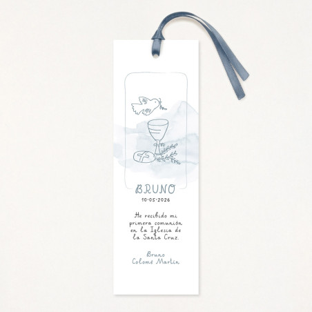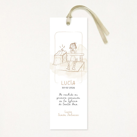Recordatori personalitzat amb totes les dades de la Primera Comunió en format punt de llibre i