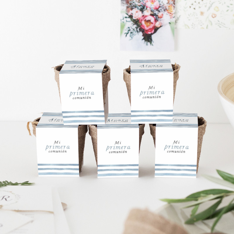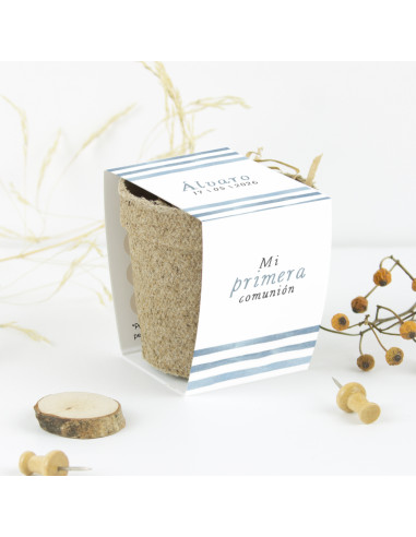 Kit de cultiu amb llavors de sàlvia, personalitzat amb el nom i la data de la seva Primera Comunió.