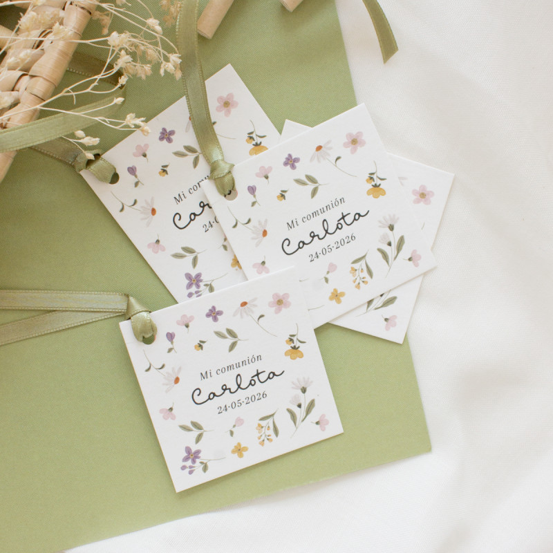 Targeta amb un logo personalitzat per a donar un toc especial i personalitzat als detalls de la celebració. Ve amb el forat fet, així que serà molt fàcil decorar qualsevol element amb una mica de cordill polit i molta il·lusió!
