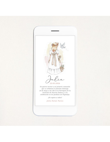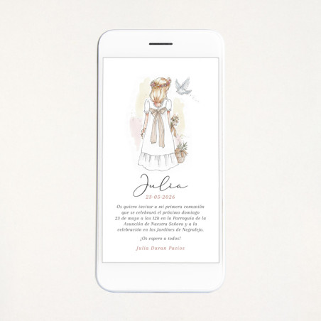 Invitació de comunió en format digital, ideal per enviar per Whatsapp o email.