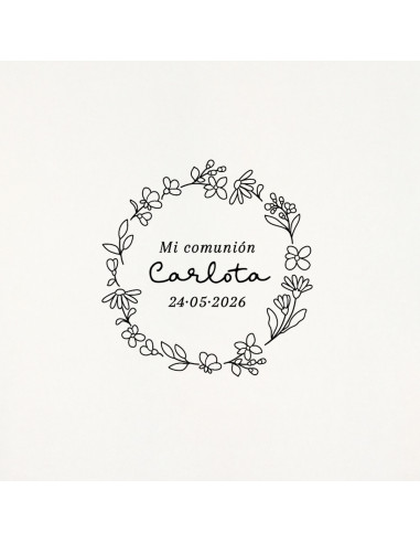 Un disseny dolç i modern personalitzat amb el nom i la data de la seva Primera Comunió. Ideal per estampar sobres, invitacions, etiquetes, bosses, capsetes… i donar aquest toc handmade a tots els detalls de la Comunió.