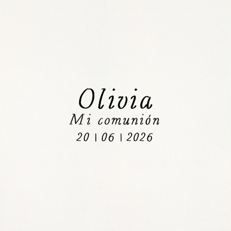 Un disseny dolç i modern personalitzat amb el nom i la data de la seva Primera Comunió. Ideal per estampar sobres, invitacions, etiquetes, bosses, capsetes… i donar aquest toc handmade a tots els detalls de la Comunió.
