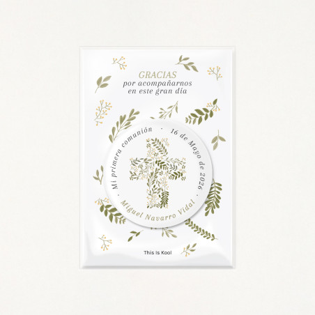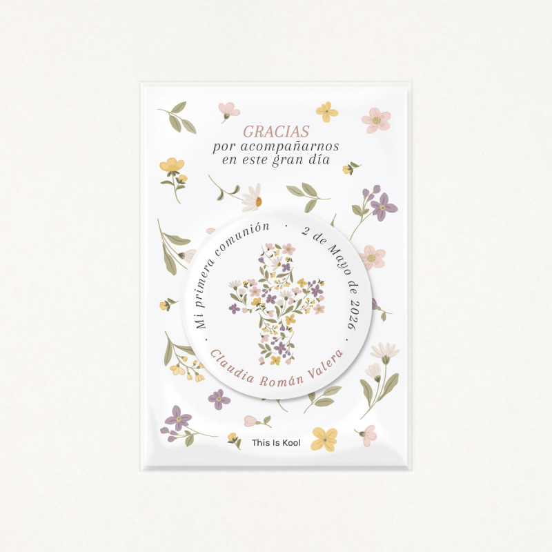 Un disseny molt dolç, amb la creu floral com a protagonista, que podràs personalitzar escollint el tipus de flor.