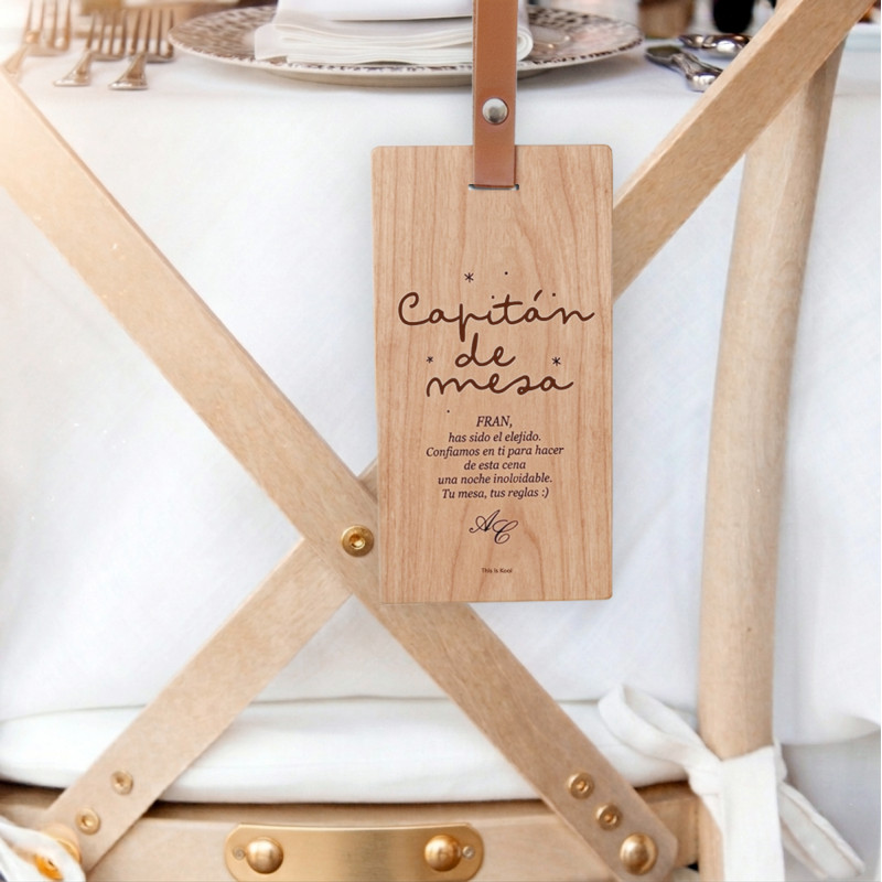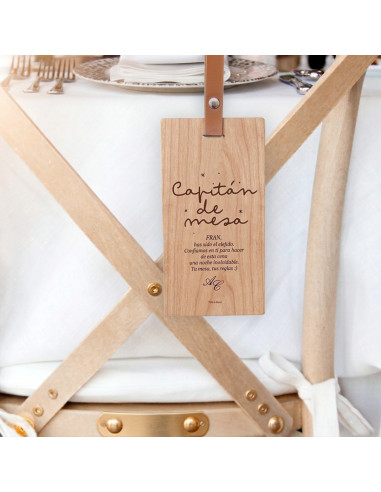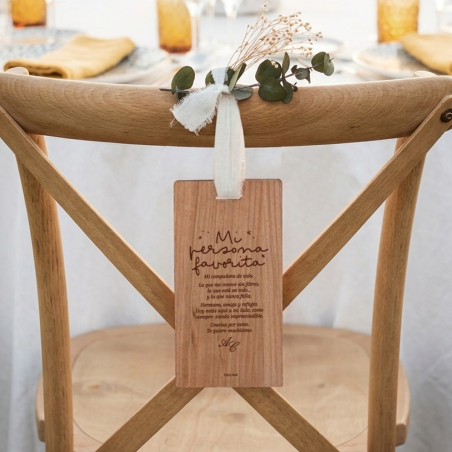 Cartell de fusta per penjar a la cadira del banquet, per als convidats més VIP al vostre casament: Mare i pare dels nuvis, capità de taula, solters d'or, testimonis, dames d'honor,...
