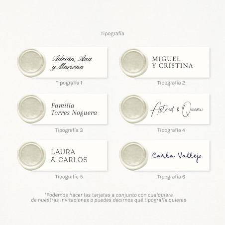 · Tipografía: podrás escoger entre las tipografías que te proponemos para que se ajusten al acabado que buscas