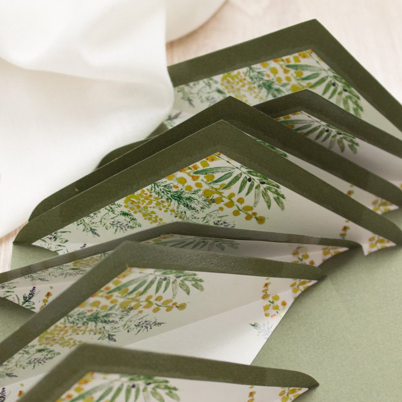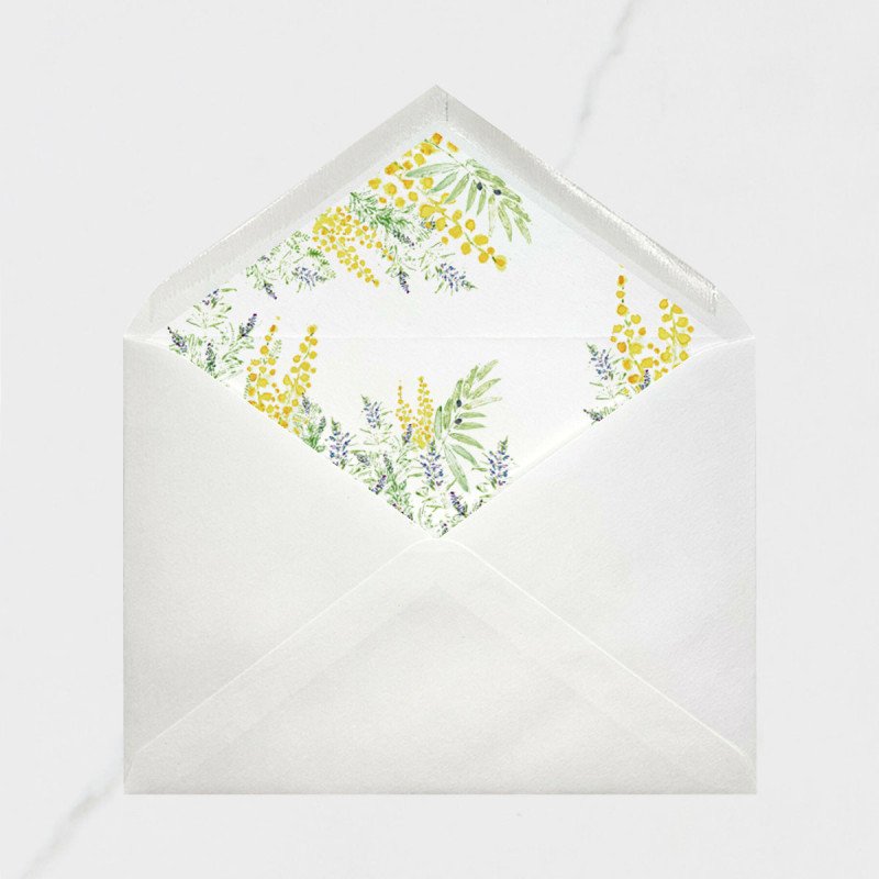 Sobre forrado, con un estampado de diferentes plantas silvestres en acuarela.