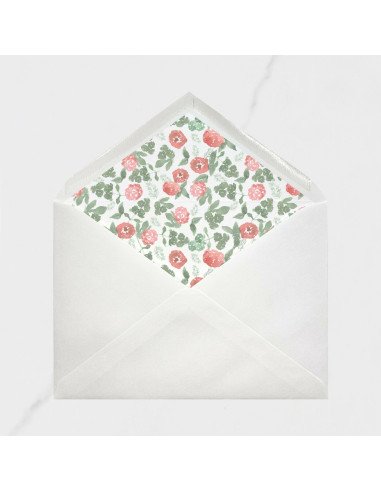 Sobre forrado, con un estampado de peonias ilustradas en acuarela.