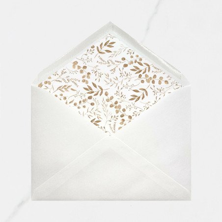 Sobre forrado, con un estampado de hojas secas ilustradas en acuarela.