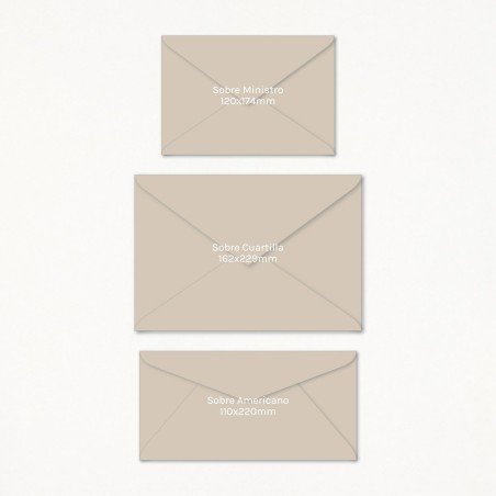 Sobre color Verde Salvia, fabricado en papel de alta calidad, de 140gr, con solapa acabada en punta humectada.