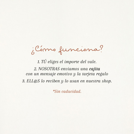 Recibirás una cajita de madera personalizada y dentro, una tarjeta regalo con un código exclusivo que el destinatario podrá usar en toda nuestra shop: invitaciones, detalles, papelería, decoración... ¡lo que sea!
