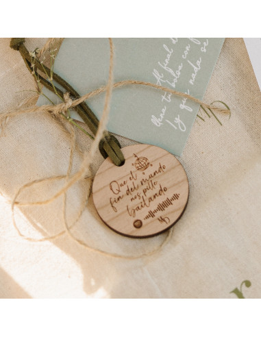 Sorprende a tus invitados con un detalle único y lleno de significado: nuestro llavero de madera personalizado, grabado con una frase motivadora, los nombres de los novios y la fecha de la boda. Un recuerdo bonito, práctico y duradero que podrán conservar.