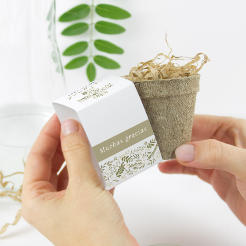 - Incluye la maceta, la turba, las semillas de salvia y el packaging personalizado.