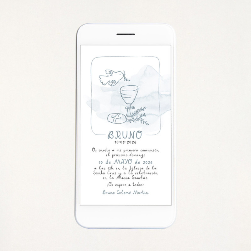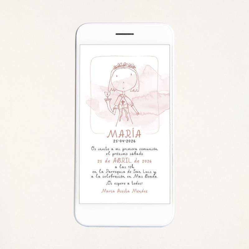 Invitación de comunión en formato digital, ideal para enviar a todos los invitados por Whatsapp o email.
