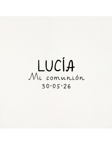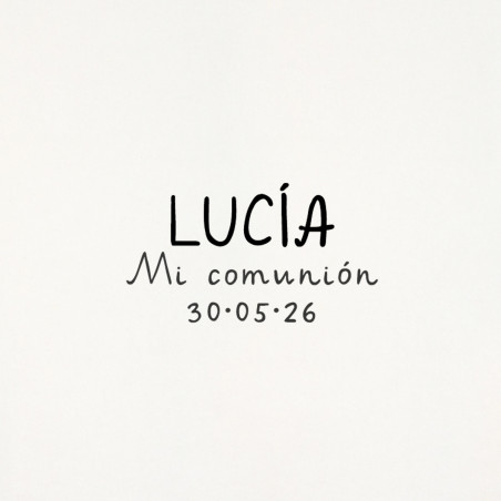 Un diseño dulce y moderno personalizado con el nombre y la fecha del su Primera Comunión. Ideal para estampar sobres, invitaciones, etiquetas, bolsas, cajitas… y dar ese toque handmade a todos los detalles de la Comunión.