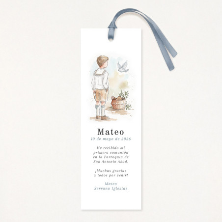 Recordatorio personalizado con todos los datos de la Primera Comunión en formato punto de libro.