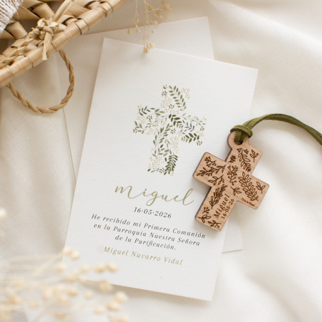 Cada llavero está elaborado en madera natural, con un acabado suave y cálido que resalta el grabado láser y aporta un toque artesanal. Con un diseño muy dulce, con la cruz floral como protagonista, que podrás personalizar escogiendo el tipo de flor.